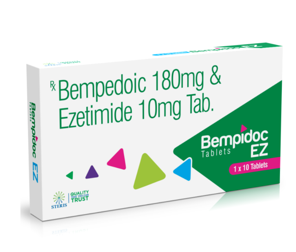 Bempedoic acid and ezetimibe work through complementary mechanisms, targeting cholesterol production in the liver and cholesterol absorption in the intestine. BEMPIDOC EZ 180/10 is often prescribed to patients who do not achieve adequate cholesterol reduction with diet alone or who require additional therapy beyond standard lipid-lowering treatments. By offering dual action in a single tablet, this medicine improves treatment effectiveness and patient compliance.