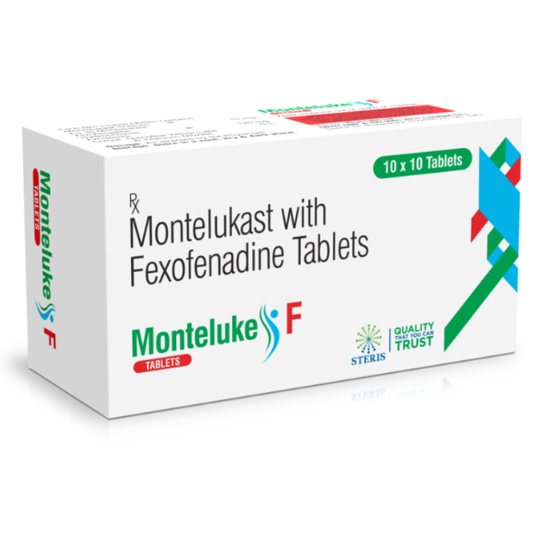 MONTELUKE F is a scientifically formulated combination of Montelukast 10 mg and Fexofenadine 120 mg, designed to provide comprehensive relief from allergy-related symptoms. This dual-action therapy works on different inflammatory pathways involved in allergic reactions, offering better and sustained symptom control compared to single-drug therapy.