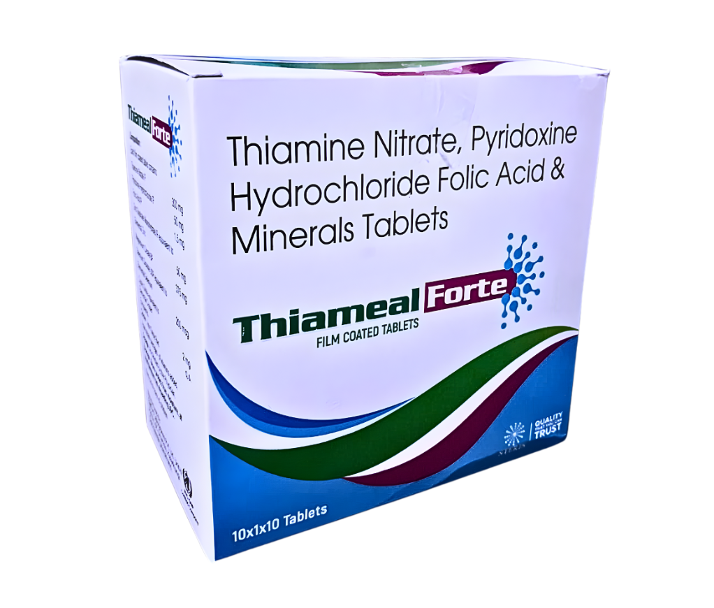 THIAMEAL FORTE is a clinically formulated nutritional supplement that combines essential B-complex vitamins—Thiamine Nitrate (Vitamin B1), Pyridoxine Hydrochloride (Vitamin B6), Folic Acid (Vitamin B9)—along with important minerals to support overall health and wellness. It is widely prescribed to manage nutritional deficiencies, improve nerve function, and boost energy levels in individuals suffering from weakness or chronic conditions.