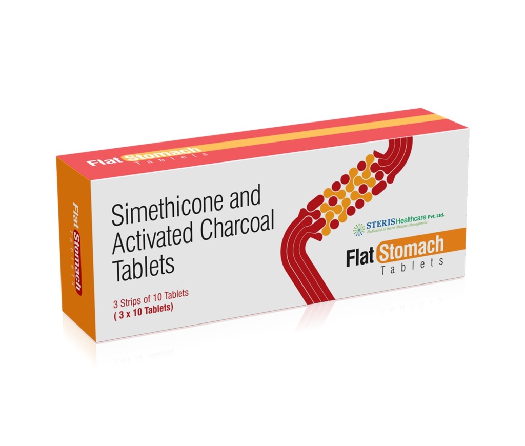 Digestive discomfort such as bloating, gas, abdominal fullness, and trapped wind can interfere with daily life and overall well-being. FLATSTOMACH Simethicone and Activated Charcoal Tablets are specially formulated to provide fast and effective relief from gas-related discomfort and digestive uneasiness. This powerful combination medicine brings together two well-known ingredients—Simethicone and Activated Charcoal—to target excess gas in the stomach and intestines.