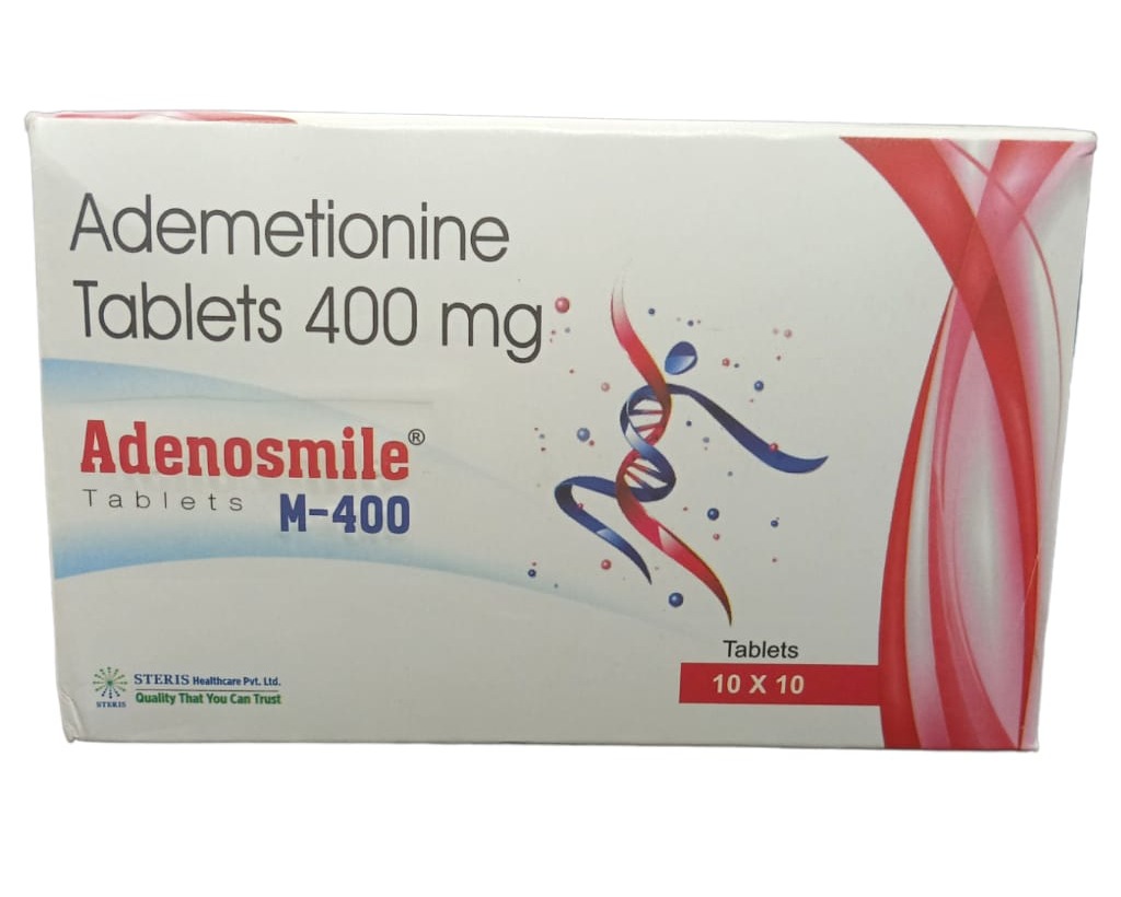 ADENOSMILE M 400 is a pharmaceutical formulation containing Ademetionine 400 mg, a naturally occurring compound that plays a crucial role in liver function, mood regulation, and cellular metabolism. Ademetionine, also known as S-Adenosyl-L-methionine (SAMe), is involved in methylation reactions, which are vital for the synthesis of neurotransmitters, phospholipids, and antioxidants.