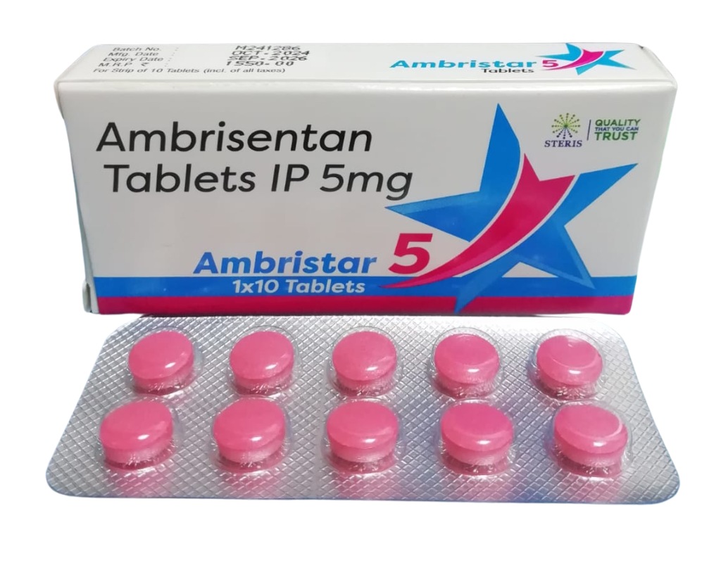 AMBRISTAR 5 is a prescription medication containing Ambrisentan 5 mg, a selective endothelin receptor antagonist used in the management of Pulmonary Arterial Hypertension (PAH). Pulmonary arterial hypertension is a serious, progressive condition characterized by high blood pressure in the arteries that supply the lungs, leading to symptoms such as shortness of breath, fatigue, chest pain, and reduced exercise capacity.