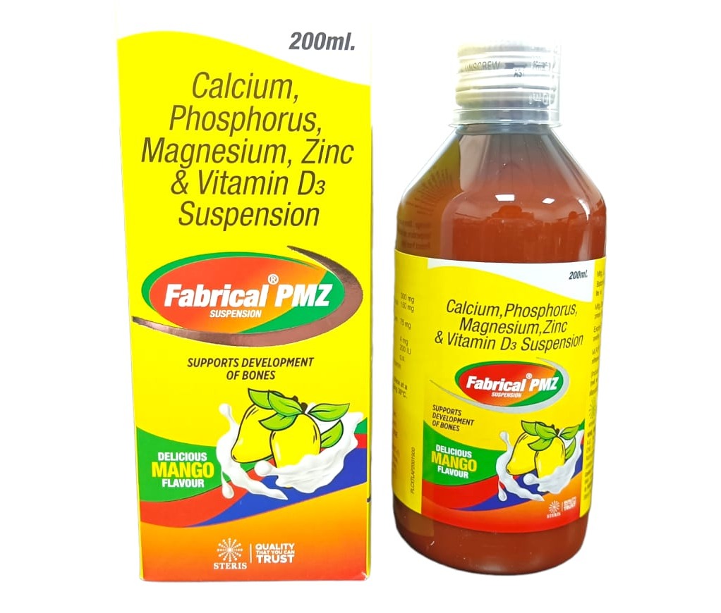 FABRICAL PMZ SUSPENSION is a comprehensive dietary supplement formulated with Calcium, Phosphorus, Magnesium, Zinc, and Vitamin D3 to support optimal bone health and overall growth. Each of these essential nutrients plays a crucial role in maintaining strong bones, healthy teeth, and proper metabolic functions.