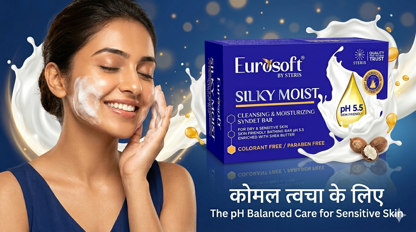 SILKY MOIST SOAP is a premium Cleansing & Moisturizing Syndet Bar (Eurosoft by Steris) specially formulated to provide gentle cleansing while maintaining the natural moisture balance of the skin. Unlike traditional soaps that can strip away essential oils, this syndet (synthetic detergent) bar is designed to be skin-friendly, non-irritating, and pH-balanced, making it suitable for daily use across all skin types.