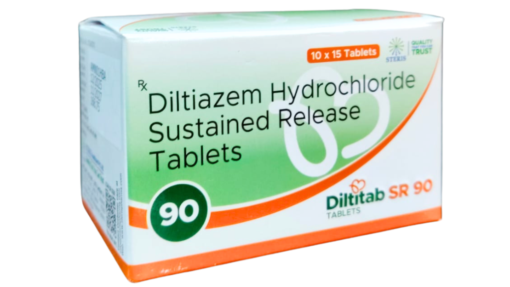 DILTITAB SR 90, containing Diltiazem Hydrochloride Tablets 90 mg, is a sustained-release formulation designed to provide consistent therapeutic action over an extended period. Diltiazem belongs to the class of medicines known as calcium channel blockers, which work by relaxing blood vessels and improving blood flow to the heart. This helps reduce the workload on the heart while maintaining stable blood pressure levels.