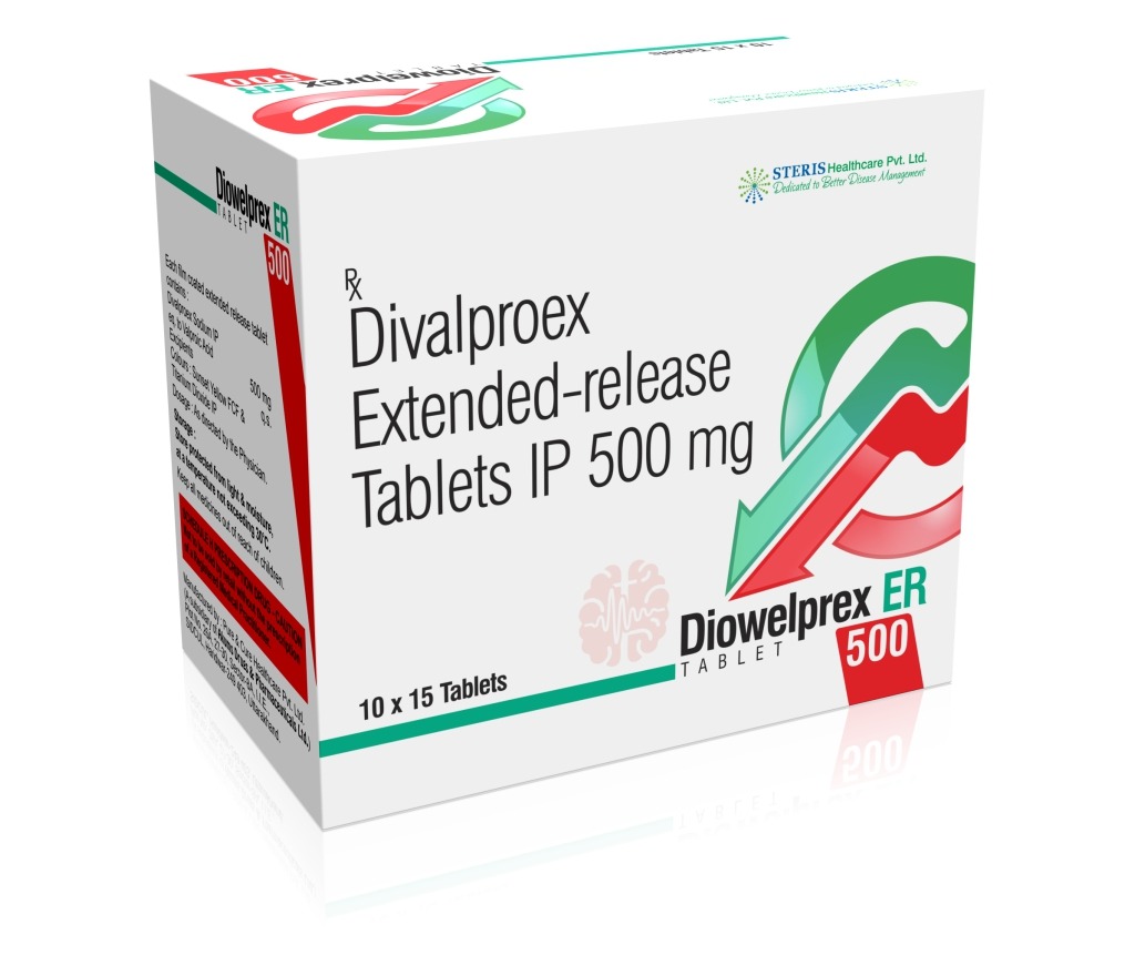 DIOWELPREX ER 500 is a clinically formulated medication containing Divalproex Extended Release (500mg), widely prescribed for the management of neurological and psychiatric disorders. Manufactured under stringent quality standards by Steris Healthcare Pvt. Ltd., this medicine is designed to provide consistent therapeutic effects with extended-release technology, ensuring steady absorption and prolonged action.