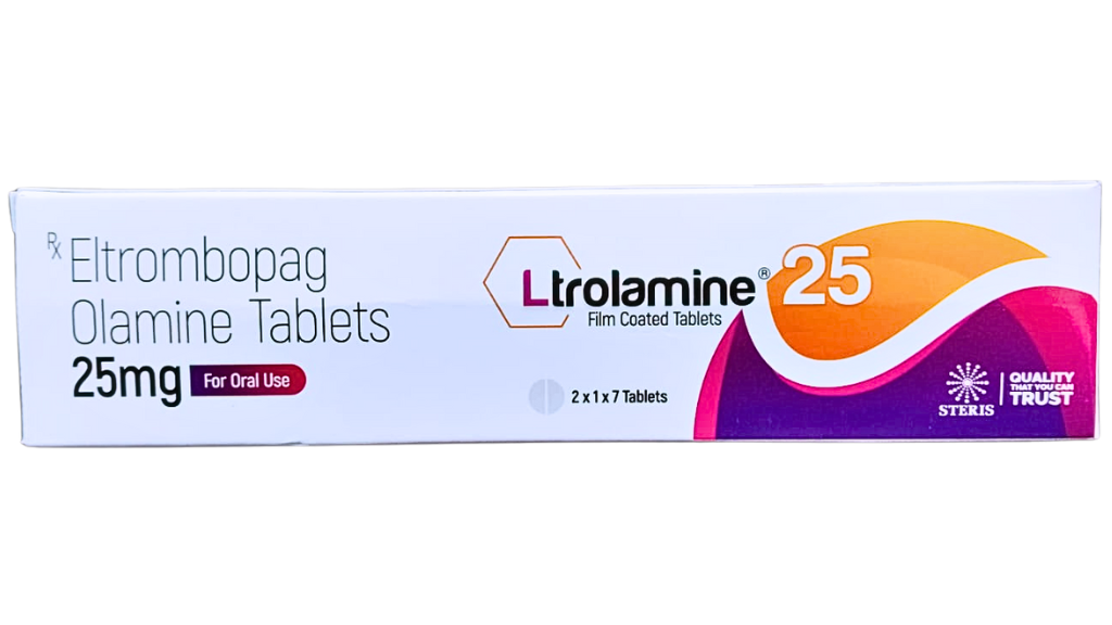 Eltrombopag Olamine Tablets 25 mg are used in the management of conditions associated with low platelet levels. LTROLAMINE 25 is commonly prescribed for: