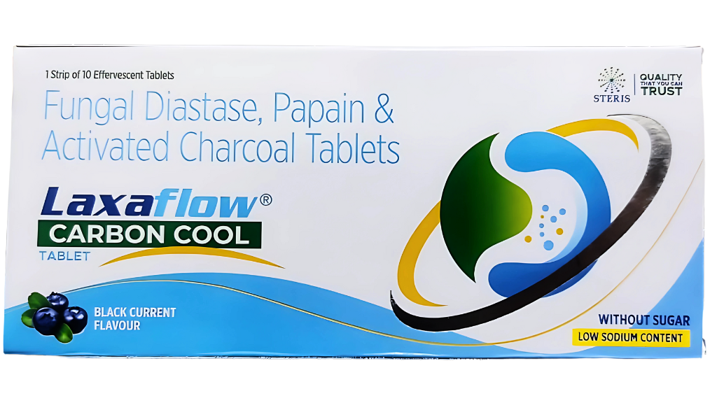 Digestive discomfort is a common problem faced by millions of people worldwide. Indigestion, bloating, gas, and irregular bowel movements can significantly affect daily life, productivity, and overall well-being. LAXAFLOW CARBON COOL, a trusted formulation by Steris Healthcare, combines Fungal Diastase (100 mg), Papain (60 mg), and Activated Charcoal (75 mg) tablets to provide fast, effective, and safe relief from digestive issues. This unique combination of ingredients works synergistically to support healthy digestion, reduce bloating, and relieve gas-related discomfort.