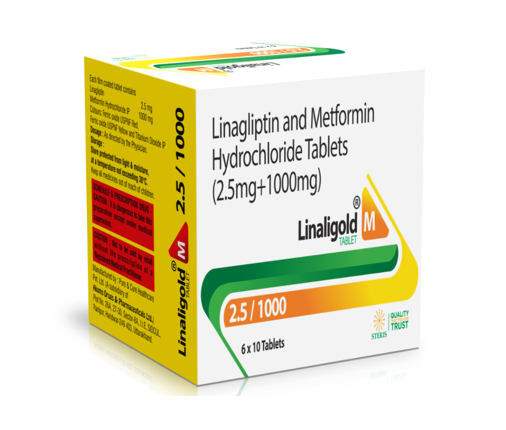 LINALIGOLD M 2.5/1000, containing Metformin (1000 mg) & Linagliptin (2.5 mg), is a reliable and effective treatment option for managing Type 2 Diabetes Mellitus. By combining two complementary anti-diabetic agents, this medication helps control blood sugar levels, reduce post-meal glucose spikes, and support long-term diabetes management.
