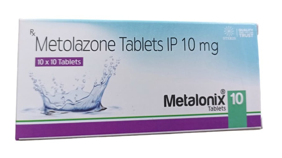 METALONIX 10, containing Metolazone 10 mg, is a clinically trusted diuretic medicine widely prescribed for managing conditions caused by excess fluid retention and high blood pressure. It belongs to the class of thiazide-like diuretics and is known for its effective action, even in patients who do not respond well to standard diuretic therapies. By promoting the elimination of excess water and sodium from the body, METALONIX 10 helps relieve symptoms such as swelling, breathlessness, and fluid accumulation associated with cardiac, renal, and hepatic disorders.