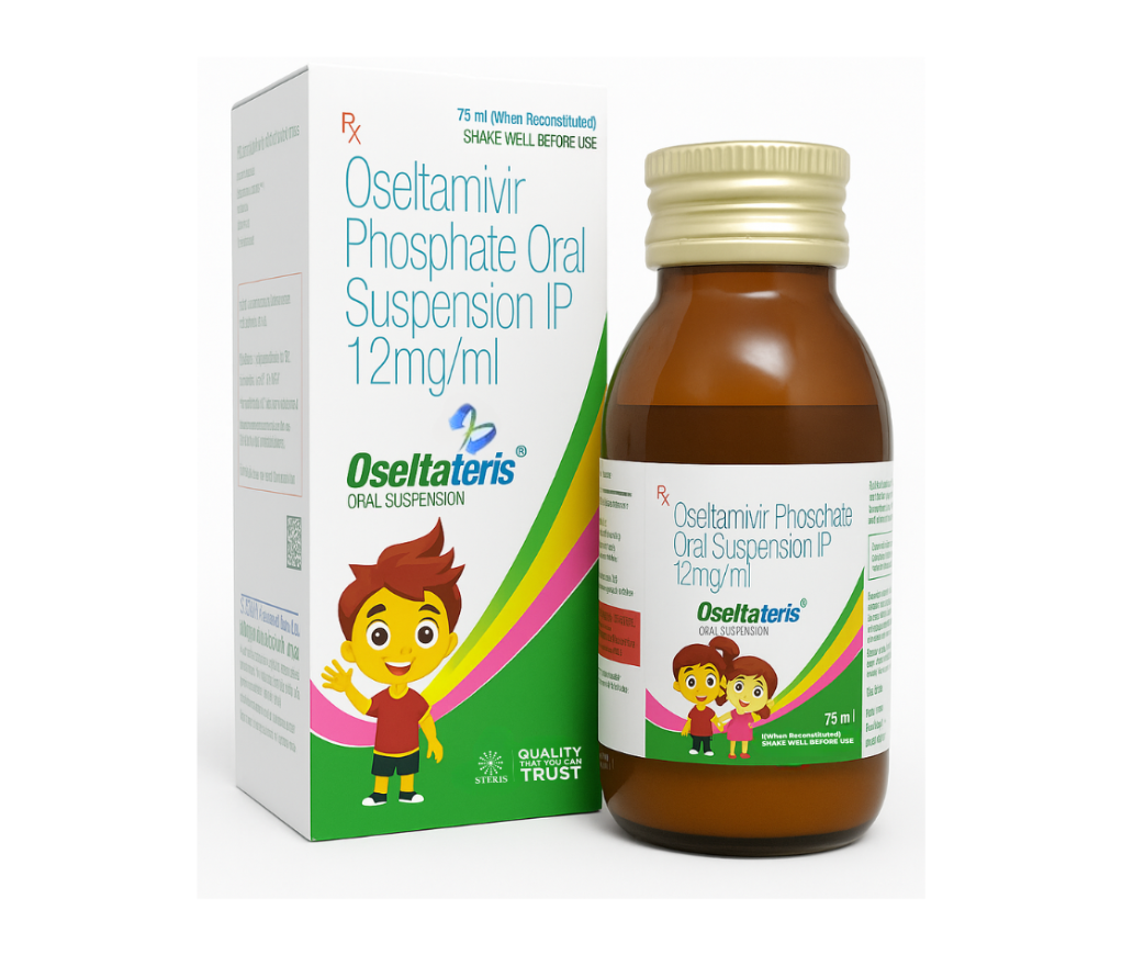 OSELTATERIS ORAL SUSPENSION Oseltamivir Phosphate Oral Suspension IP 12mg is a trusted antiviral medication used for the effective treatment and prevention of influenza infections. Its liquid formulation makes it particularly suitable for children and individuals who prefer an easy-to-swallow option.