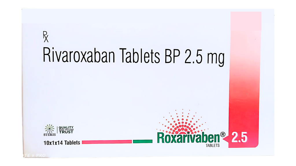 ROXARIVABEN 2.5 is an oral anticoagulant containing Rivaroxaban 2.5 mg, designed to help prevent blood clots and reduce the risk of cardiovascular complications. Rivaroxaban is a selective Factor Xa inhibitor that works by blocking the activity of Factor Xa, a critical protein involved in the coagulation cascade. By inhibiting Factor Xa, Rivaroxaban prevents the formation of harmful blood clots, helping maintain normal blood flow and reducing the risk of serious events such as heart attack, stroke, and venous thromboembolism (VTE).