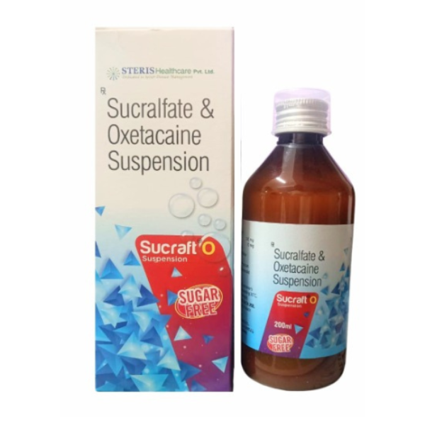 SUCRAFT O SUSP, with its powerful combination of Sucralfate and Oxetacaine, is a highly effective treatment option for individuals dealing with gastric ulcers, acid reflux, gastritis, and other related gastrointestinal issues. By offering both protective healing and immediate pain relief, this suspension provides comprehensive relief from the symptoms of digestive disorders.Steris Healthcare Pvt Ltd, known as Sterispharma, was founded in February 2018 by a team of experienced professionals in the pharmaceutical industry. Headquartered in Navi Mumbai, the company holds certifications from WHO, GMP, and ISO, reflecting its dedication to maintaining high standards of quality and safety. Sterispharma’s mission is to provide affordable, high-quality medications across India, strictly adhering to WHO guidelines. With the convenience of an online pharmacy, customers can easily order medicines with home delivery options. The company offers a wide range of healthcare products, catering to various medical needs, from rare disease treatments to essential healthcare products. Sterispharma's product range includes solutions for Cardiology, Asthma, Respiratory Issues, Nasal Conditions, Diabetes, Endocrinology, Gastroenterology, Orthopedics, Anti-infectives/Antibiotics, General Medicine, Urology, Neurology, Nephrology, Oncology, Gynecology, Pediatrics, Dental Care, and Dermatology. Medicines can be conveniently ordered via Our websites—Sterisonline, Sterisindia, and Sterispharma.