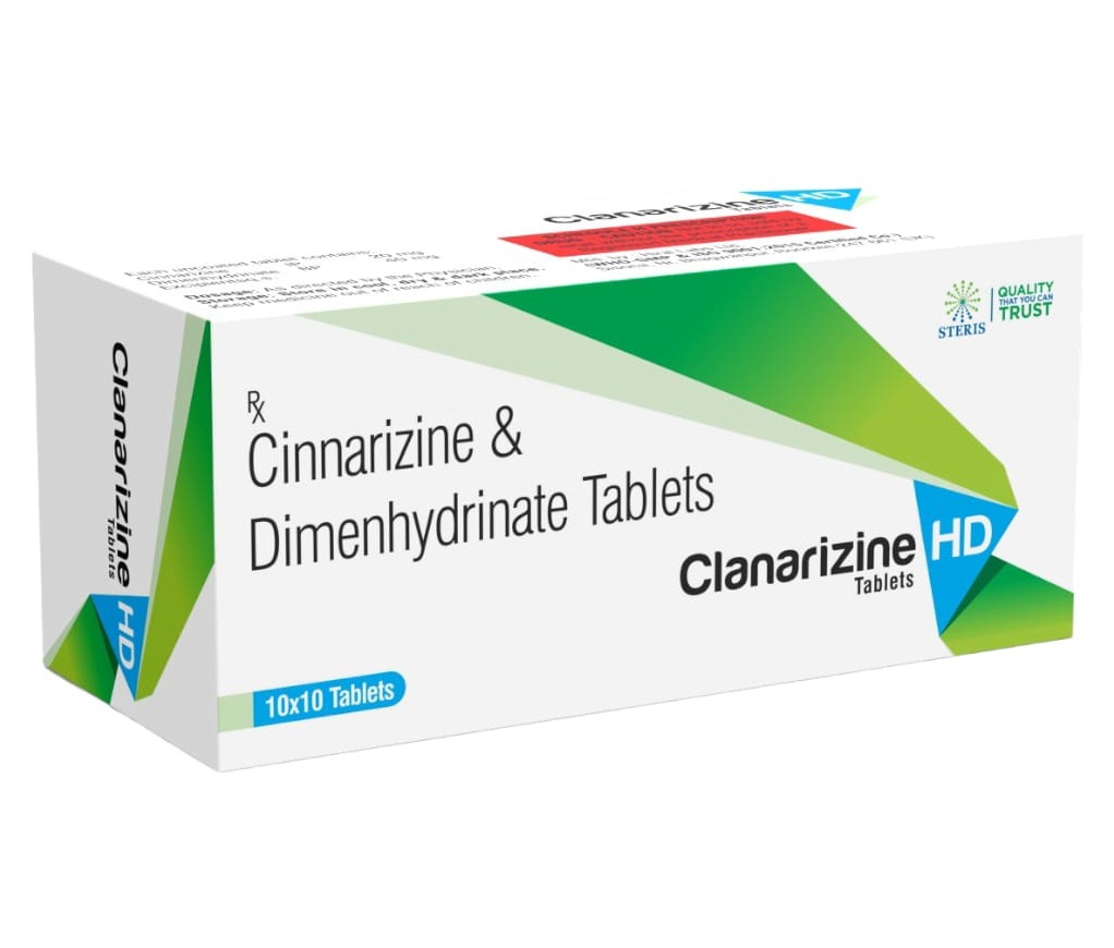CLANARIZINE HD is a trusted pharmaceutical formulation that combines Cinnarizine and Dimenhydrinate, specifically designed to manage symptoms related to motion sickness, vertigo, and balance disorders. Developed under stringent quality standards, this medicine offers a reliable solution for individuals who experience nausea, dizziness, and vomiting due to vestibular system disturbances. The unique combination of these two active ingredients works synergistically to reduce inner ear disturbances and stabilize neural signals responsible for maintaining balance. CLANARIZINE HD is widely recognized for its efficacy and safety profile in both adults and older patients.