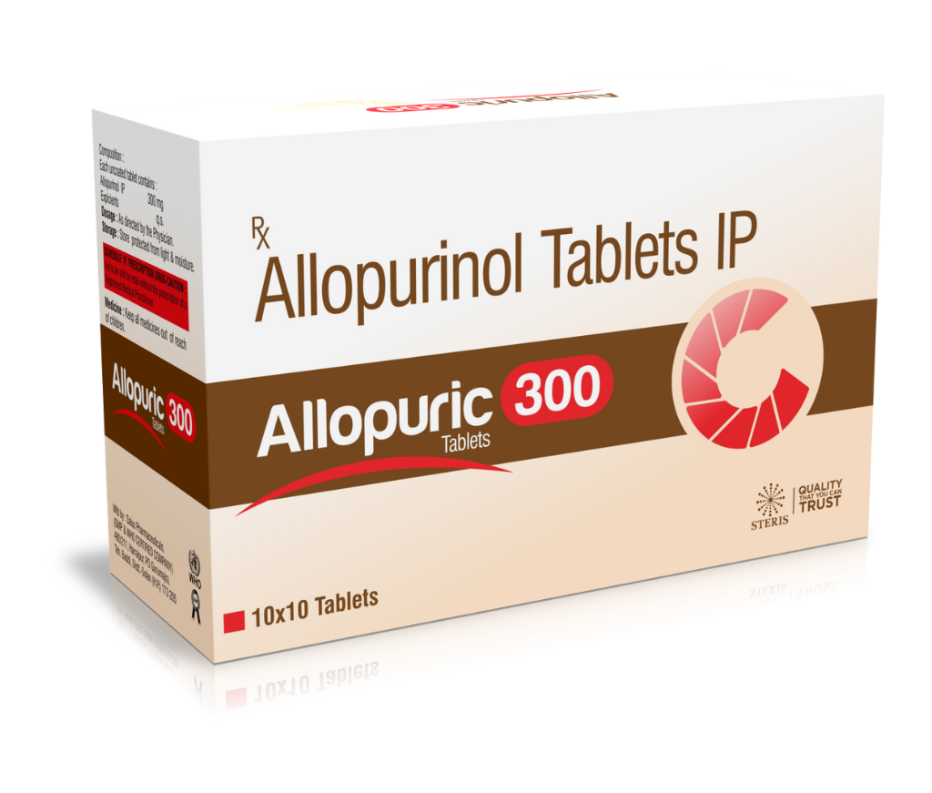 Allopurinol 300mg ALLOPURIC 300 is a trusted pharmaceutical formulation containing Allopurinol 300 mg, a powerful uric acid-lowering medication widely used in the management of gout and hyperuricemia. Manufactured with precision, ALLOPURIC 300 helps regulate excessive uric acid levels in the blood, preventing the formation of urate crystals that lead to painful gout attacks and kidney stones. Allopurinol belongs to a class of medicines known as xanthine oxidase inhibitors, which work by blocking the enzyme responsible for uric acid production. By controlling uric acid buildup, ALLOPURIC 300 not only reduces the frequency of gout attacks but also supports long-term joint and kidney health. This medication is commonly prescribed for individuals suffering from chronic gout, uric acid nephropathy, and uric acid kidney stones, as well as those undergoing chemotherapy who are at risk of increased uric acid levels. Uses of ALLOPURIC 300 ALLOPURIC 300 (Allopurinol 300mg) is primarily used for: Gout Treatment: Reduces high uric acid levels responsible for gout attacks, relieving pain, redness, and swelling in the joints. Prevention of Kidney Stones: Helps prevent the formation of urate crystals and kidney stones caused by excess uric acid. Hyperuricemia Management: Used to manage chronic hyperuricemia (elevated uric acid levels) that can occur due to various medical conditions or treatments. Chemotherapy-Induced Hyperuricemia: Helps control uric acid production in patients undergoing cancer treatment, reducing the risk of tumor lysis syndrome. Enzyme Disorders: Beneficial in treating enzyme disorders such as Lesch-Nyhan syndrome, where uric acid levels are abnormally high due to genetic factors. Benefits of ALLOPURIC 300 Reduces Gout Attacks: Regular use of ALLOPURIC 300 helps maintain normal uric acid levels, preventing painful and recurrent gout episodes. Protects Kidney Function: Prevents uric acid crystal deposition in the kidneys, reducing the risk of nephropathy and kidney stones. Long-Term Uric Acid Control: Offers consistent management of uric acid buildup in chronic conditions, ensuring better metabolic stability. Improves Quality of Life: By preventing gout flares and kidney complications, ALLOPURIC 300 enhances comfort, mobility, and daily functioning. Effective During Chemotherapy: Minimizes uric acid complications in patients receiving cancer treatments, offering an added protective benefit. Clinically Tested and Trusted: Allopurinol has been clinically proven for decades as a safe and effective therapy for gout and hyperuricemia management. Dosage of ALLOPURIC 300 The dosage of ALLOPURIC 300 (Allopurinol 300 mg) should be determined by a healthcare professional based on individual health conditions and uric acid levels. Typical Adult Dosage: Usually, 100 to 300 mg once daily, taken after meals with a full glass of water. The dosage may be adjusted gradually to maintain optimal uric acid control. For Severe Cases: In certain chronic or severe gout cases, the dose may be increased under medical supervision up to 600 mg per day in divided doses. Hydration: It is essential to drink plenty of fluids during treatment to help flush out uric acid and prevent kidney stones. Missed Dose: If you miss a dose, take it as soon as possible. Skip the missed dose if it’s almost time for your next one—do not double up. Note: Never self-medicate or change the dose without consulting your doctor. Side Effects of ALLOPURIC 300 Like all medications, ALLOPURIC 300 may cause some side effects, although not everyone experiences them. Most are mild and temporary. Common Side Effects: Nausea or vomiting Diarrhea Drowsiness or dizziness Rash or mild skin irritation Headache Rare but Serious Side Effects: Severe skin reactions (e.g., Stevens-Johnson syndrome) Liver function abnormalities Blood disorders (anemia or low white blood cell count) Hypersensitivity reactions such as fever, chills, or swelling If any serious side effects or allergic symptoms occur, seek medical help immediately. Regular monitoring of liver and kidney function is recommended during long-term therapy.
