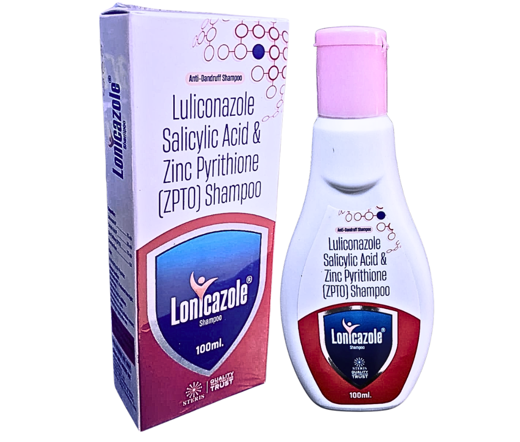 LONICAZOLE SHAMPOO is a specialized medicated scalp treatment formulated with Luliconazole, Salicylic Acid, and Zinc Pyrithione (ZPTO). This advanced combination shampoo is designed to effectively manage fungal scalp infections, dandruff, itching, and other scalp-related conditions. A healthy scalp is essential for strong hair growth, and untreated scalp infections can lead to persistent irritation, flakes, and hair fall. The combination of Luliconazole Salicylic Acid & Zinc Pyrithione (ZPTO) Shampoo works by targeting the root causes of scalp disorders. Luliconazole is a potent antifungal agent that helps eliminate fungal infections responsible for dandruff and seborrheic dermatitis. Salicylic Acid acts as a keratolytic agent that removes dead skin cells and reduces scaling on the scalp. Zinc Pyrithione is widely known for its antimicrobial and anti-dandruff properties, helping to control fungal growth and maintain scalp hygiene. Together, these ingredients provide a comprehensive solution for scalp health by reducing dandruff, controlling infection, and soothing irritation. LONICAZOLE SHAMPOO is often recommended by healthcare professionals for individuals experiencing chronic dandruff, itchy scalp, or fungal scalp infections. Uses of luliconazole LONICAZOLE SHAMPOO, containing Luliconazole, Salicylic Acid & Zinc Pyrithione (ZPTO), is commonly used for the treatment and management of several scalp conditions, including: Dandruff (Seborrheic Dermatitis) – Helps control persistent flakes and scalp irritation. Fungal Scalp Infections – Eliminates fungi responsible for itching and inflammation. Itchy and Irritated Scalp – Provides relief from discomfort caused by scalp infections. Scalp Scaling and Flaking – Salicylic acid helps remove excess dead skin cells. Oily and Unhealthy Scalp – Regulates scalp oil production and improves scalp hygiene. Hair Fall Associated with Scalp Infection – Helps reduce hair fall by maintaining a healthy scalp environment. This medicated shampoo is suitable for individuals suffering from chronic dandruff or fungal scalp disorders that do not respond well to regular shampoos. Benefits of luliconazole The combination of Luliconazole Salicylic Acid & Zinc Pyrithione (ZPTO) Shampoo offers multiple benefits for maintaining scalp health and controlling scalp infections. 1. Powerful Antifungal Action Luliconazole effectively targets and eliminates fungal organisms responsible for dandruff and scalp infections. 2. Reduces Dandruff and Flaking Zinc Pyrithione helps control dandruff-causing microbes and reduces visible flakes on the scalp. 3. Removes Dead Skin Cells Salicylic Acid gently exfoliates the scalp, helping remove accumulated dead skin cells and scales. 4. Relieves Itching and Irritation The formulation helps soothe the scalp and reduce itching caused by fungal infections and dryness. 5. Improves Overall Scalp Health By controlling fungal growth and cleansing the scalp, the shampoo promotes a healthier scalp environment. 6. Helps Prevent Recurrence of Dandruff Regular use may help reduce the chances of recurring dandruff and scalp infections. 7. Supports Healthier Hair Growth A clean and infection-free scalp creates favorable conditions for stronger and healthier hair growth. Dosage of luliconazole LONICAZOLE SHAMPOO should be used according to the instructions provided by a healthcare professional. General usage guidelines include: Apply the shampoo to wet hair and scalp. Gently massage to create a lather. Leave the shampoo on the scalp for 3–5 minutes to allow the active ingredients to work effectively. Rinse thoroughly with water. Use the shampoo two to three times per week, or as advised by your doctor. Avoid using excessive amounts of shampoo, and follow the recommended frequency to achieve optimal results. Side Effects Most people tolerate Luliconazole Salicylic Acid & Zinc Pyrithione (ZPTO) Shampoo well when used as directed. However, some individuals may experience mild side effects. Common side effects may include: Mild scalp irritation Redness or dryness of the scalp Temporary burning or stinging sensation Slight hair dryness These effects are usually mild and temporary. If severe irritation, rash, or allergic reactions occur, discontinue use and consult a healthcare professional. Precautions and Warning Before using LONICAZOLE SHAMPOO, certain precautions should be taken to ensure safe and effective use. For External Use Only This shampoo is intended for topical application on the scalp only. Avoid ingestion. Avoid Contact with Eyes If the shampoo accidentally comes into contact with the eyes, rinse immediately with clean water. Allergy Check Individuals with known allergies to any of the ingredients should consult a healthcare professional before using this product. Use in Children Use in children should be done only under medical advice. Pregnancy and Breastfeeding Pregnant or breastfeeding women should consult their doctor before using medicated shampoos.