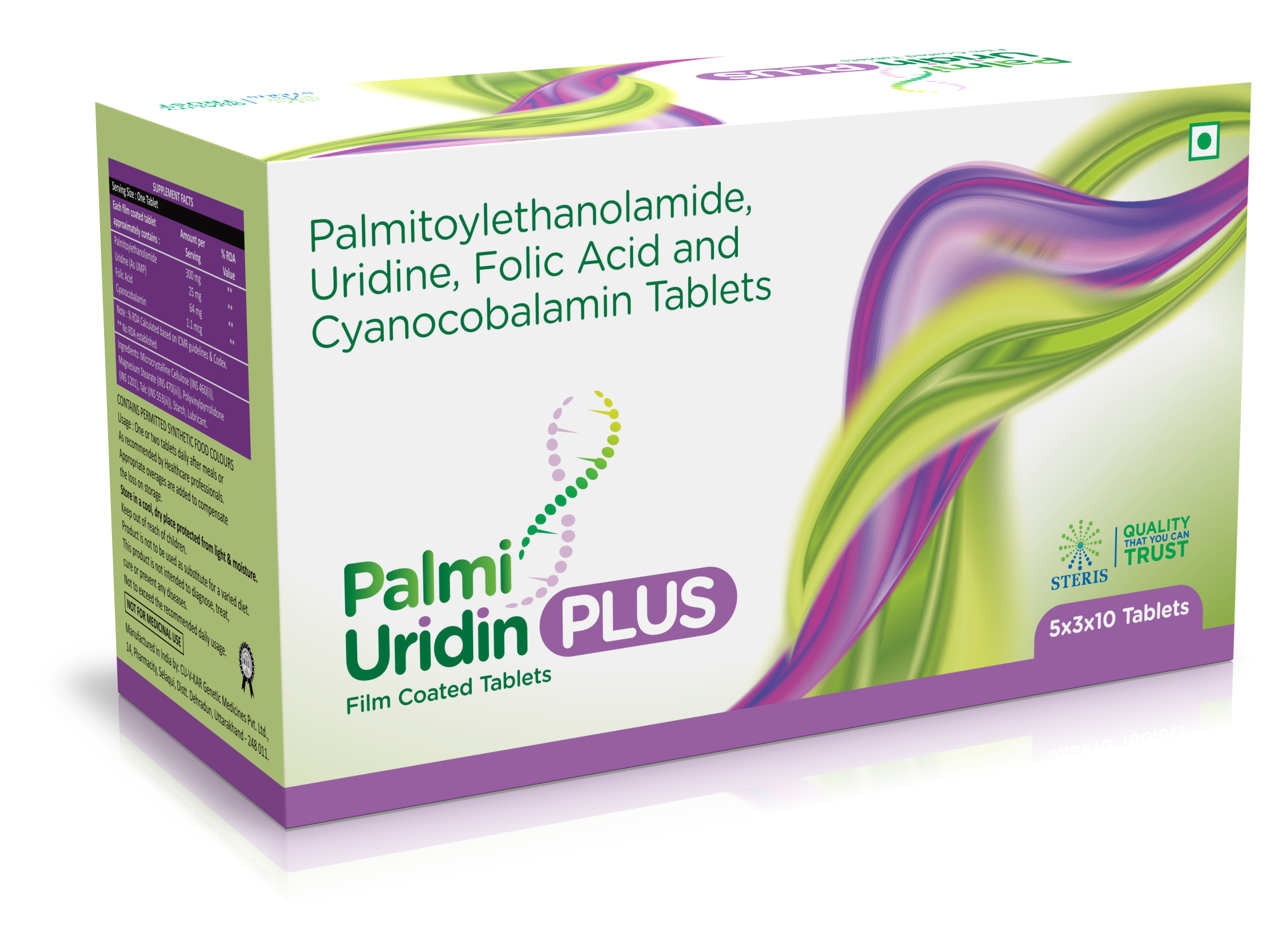 PALMI URIDIN PLUS Palmitoylethanolamide, Uridine, Folic Acid and Cyanocobalamin PALMI URIDIN PLUS is a dietary supplement combining Palmitoylethanolamide (PEA), Uridine, Folic Acid, and Cyanocobalamin. This article provides a comprehensive overview of PALMI URIDIN PLUS, covering its uses, dosage, side effects, price, and concluding insights to offer a thorough understanding of this supplement. Uses of PALMI URIDIN PLUS PALMI URIDIN PLUS is designed to support various aspects of health, particularly in managing pain, inflammation, and supporting neurological function. The primary components and their uses include: Palmitoylethanolamide (PEA): PEA is a naturally occurring fatty acid amide that has anti-inflammatory and analgesic properties. It is used for managing chronic pain conditions such as neuropathic pain, fibromyalgia, and inflammatory disorders. Uridine: Uridine is a nucleotide that plays a crucial role in the synthesis of RNA and the formation of brain synapses. It supports cognitive function, memory, and overall brain health. Folic Acid (Vitamin B9): Folic Acid is essential for DNA synthesis, repair, and methylation. It is critical for proper brain function and plays a vital role in mental and emotional health. Cyanocobalamin (Vitamin B12): Vitamin B12 is essential for nerve tissue health, brain function, and the production of red blood cells. It helps prevent nerve damage and supports overall neurological function. Mechanism of Action The combination of these ingredients in PALMI URIDIN PLUS works synergistically to support neurological health, reduce inflammation, and manage pain. Here's how each component works: Palmitoylethanolamide: PEA modulates the immune response and reduces inflammation by activating the peroxisome proliferator-activated receptor-alpha (PPAR-α). It also inhibits the release of pro-inflammatory mediators. Uridine: Uridine enhances synaptic function and plasticity, supporting cognitive health and memory formation. Folic Acid: Folic Acid participates in the synthesis of neurotransmitters and supports the methylation process, which is crucial for maintaining mental health. Cyanocobalamin: Vitamin B12 is involved in the maintenance of myelin, the protective sheath around nerves, and supports the production of neurotransmitters. Steris Healthcare Pvt Ltd, founded by a group of expert professionals in the pharmaceutical industry in February 2018, operates as Sterispharma. This company, which is based in Navi Mumbai, holds certifications from WHO, GMP, and ISO. Its commitment is to provide high-quality drugs at affordable prices to its customers throughout India, following the rigorous guidelines set by the WHO. Steris offers the convenience of an online pharmacy where customers can easily buy medicines and enjoy the benefit of home delivery. At Steris, the mission is to supply a wide array of healthcare products designed to meet the varied needs of the medical community. Whether it is advanced treatments, medications for rare conditions, or basic health necessities, Sterispharma strives to serve the healthcare industry’s broad demands. The extensive product lineup from Steris includes treatments for various health areas such as Cardiology, Asthma, Respiratory issues, Nasal conditions, Diabetes, Endocrinology, Gastroenterology, Orthopedics, Anti-infectives/antibiotics, General Medicine, Urology, Neurology, Nephrology, Oncology, Gynecology, Pediatrics, Dental care, and Dermatology. For further information: EMAIL: info@sterispharma.com / contact@sterispharma.com CALL/WHATSAPP: 7877551268, 7849827488 BUY NOW https://www.sterisonline.com/product/palmi-uridin-plus-134407