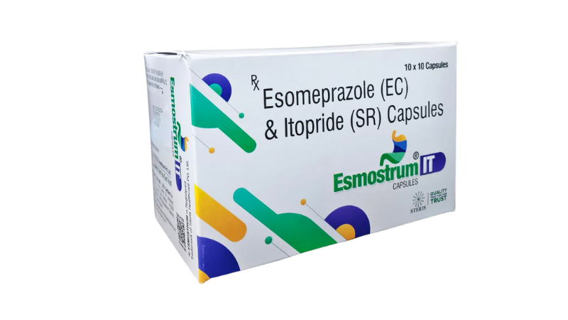 ESMOSTRUM IT is a clinically effective combination of Esomeprazole 40 mg and Itopride 150 mg, formulated to provide comprehensive relief from acid-related gastrointestinal disorders and motility issues. This dual-action medicine works by reducing excess stomach acid while also improving gastric movement, making it an ideal choice for patients suffering from conditions such as gastroesophageal reflux disease, functional dyspepsia, acidity, and indigestion. Manufactured with high-quality standards, ESMOSTRUM IT helps restore digestive comfort and improves overall gut function. It is commonly prescribed by healthcare professionals in India for patients who experience persistent acidity along with symptoms like bloating, nausea, early satiety, and abdominal discomfort. Uses ESMOSTRUM IT is widely used for the management of various gastrointestinal conditions, including: Gastroesophageal reflux disease Acid reflux and heartburn Functional dyspepsia Chronic gastritis Indigestion and bloating Delayed gastric emptying Nausea and vomiting associated with gastric disorders By addressing both acid secretion and impaired gut motility, ESMOSTRUM IT offers complete symptom control and long-lasting relief. Benefits The combination of Esomeprazole and Itopride provides multiple therapeutic benefits: Effectively reduces excess stomach acid Improves gastric motility and digestion Relieves heartburn, acidity, and acid regurgitation Reduces bloating, nausea, and fullness after meals Helps heal acid-related damage to the stomach and food pipe Enhances patient comfort and quality of life ESMOSTRUM IT is especially beneficial for patients who do not get adequate relief from acid-suppressing medicines alone. Dosage The dosage of ESMOSTRUM IT should always be taken as advised by a healthcare professional. Typically, it is recommended to take the tablet before meals, preferably in the morning. The tablet should be swallowed whole with water and should not be crushed or chewed. Dosage may vary depending on the severity of the condition, patient response, and medical history. Do not exceed the prescribed dose without consulting your doctor. Side Effects ESMOSTRUM IT is generally well tolerated when taken as prescribed. However, some individuals may experience mild side effects such as: Headache Diarrhea or constipation Abdominal pain Nausea Dizziness Flatulence These side effects are usually temporary and resolve on their own. If any symptom persists or worsens, medical advice should be sought promptly. Precautions and Warning Use with caution in patients with liver impairment Inform your doctor if you are pregnant or breastfeeding Not recommended for long-term use without medical supervision Avoid alcohol consumption during treatment as it may worsen acidity Inform your doctor about any other medicines you are taking to avoid interactions Seek immediate medical attention if severe allergic reactions occur Patients should follow dietary and lifestyle modifications along with medication for better outcomes. Conclusion ESMOSTRUM IT is a trusted and effective solution for managing acid reflux and digestive motility disorders. With the combined action of Esomeprazole 40 mg and Itopride 150 mg, it not only controls acid production but also enhances stomach movement, providing complete and sustained relief from gastrointestinal discomfort. When used under medical supervision, ESMOSTRUM IT helps improve digestion, reduces symptoms, and supports better digestive health, making it a valuable choice for patients suffering from chronic acidity and related conditions.