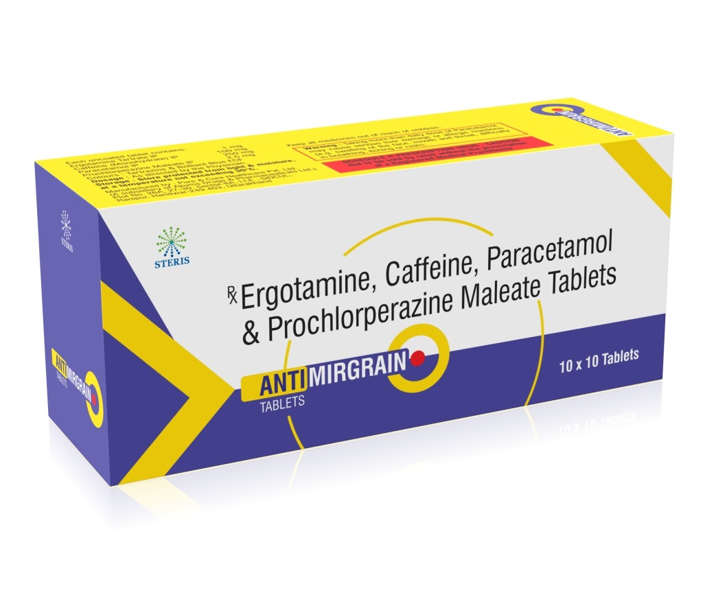 ANTIMIRGRAIN is a reliable and widely used combination therapy for acute migraine attacks. With the synergistic action of Ergotamine Tartrate, Caffeine, Paracetamol, and Prochlorperazine Maleate, it provides comprehensive relief from headache, nausea, vomiting, and vascular discomfort. While highly effective, it must be used responsibly and only under medical supervision due to its potent ingredients. For individuals seeking strong and quick migraine relief, ANTIMIRGRAIN offers a dependable solution when taken safely and correctly.