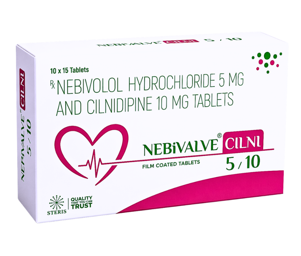NEBIVALVE CILNI 5/10 (Nebivolol Hydrochloride 5 mg and Cilnidipine 10 mg Tablets is an advanced and effective combination therapy for managing hypertension and protecting cardiovascular health. Its dual-action mechanism ensures better blood pressure control, reduced risk of complications, and improved overall well-being.