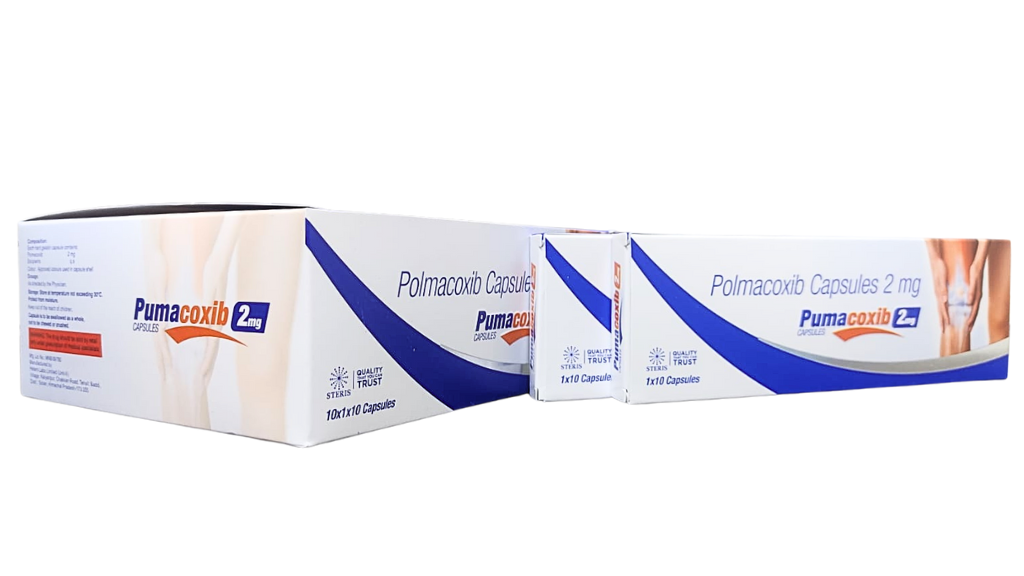 PUMACOXIB 2 MG – Polmacoxib Capsules 2 mg is an effective and safe solution for managing pain and inflammation in conditions such as osteoarthritis, rheumatoid arthritis, and other musculoskeletal disorders. With targeted COX-2 inhibition, it provides reliable pain relief while minimizing gastrointestinal side effects common with traditional NSAIDs. Adhering to prescribed dosages, taking necessary precautions, and consulting your healthcare provider regularly ensures optimal outcomes. PUMACOXIB 2 MG not only reduces pain and inflammation but also improves mobility and quality of life, making it a trusted choice for patients seeking long-term relief from chronic inflammatory conditions.