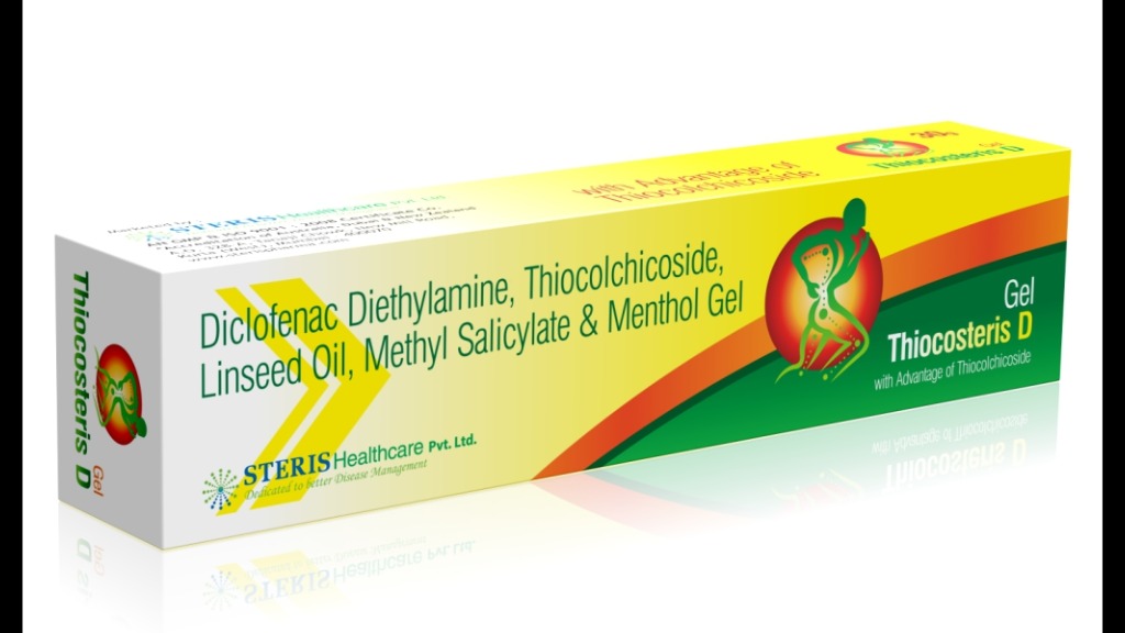Diclofenac, a well-known NSAID, targets inflammation and pain, while Thiocolchicoside works as a muscle relaxant to ease stiffness and spasms. Linseed oil nourishes the skin and supports joint health, and the cooling effect of Methyl Salicylate and Menthol provides instant relief and comfort. This combination makes THIOCOSTERIS D GEL an ideal solution for individuals suffering from arthritis, sports injuries, back pain, and general body aches.