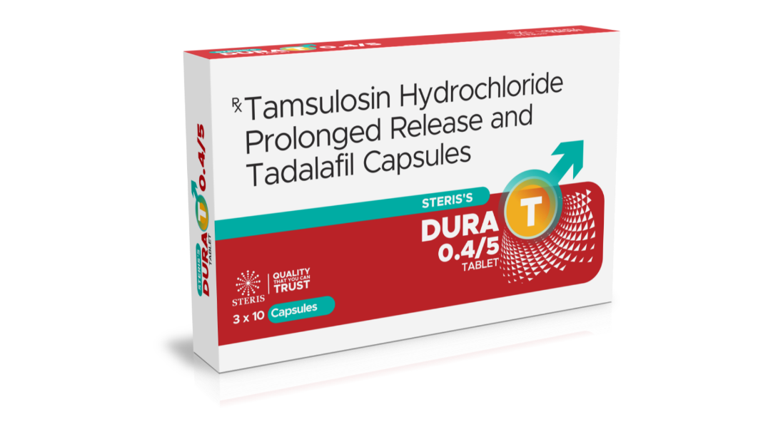 DURA T 0.4/5 is a clinically advanced combination medication formulated with Tamsulosin Hydrochloride IP (as prolonged release pellets) and Tadalafil IP. This dual-action medicine is primarily prescribed for the management of urinary symptoms associated with benign prostatic hyperplasia (BPH), commonly known as prostate enlargement, along with erectile dysfunction (ED). By combining two well-established active ingredients, DURA T 0.4/5 provides comprehensive relief from urinary discomfort while also improving sexual function, significantly enhancing the overall quality of life for patients.